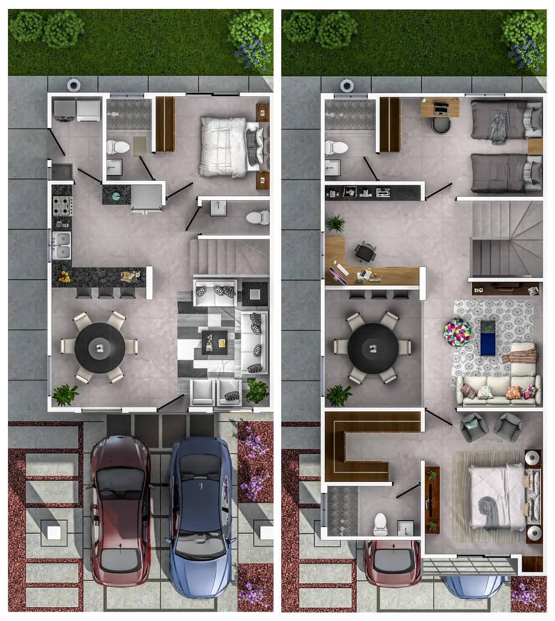 Cochera techada para dos autos.
